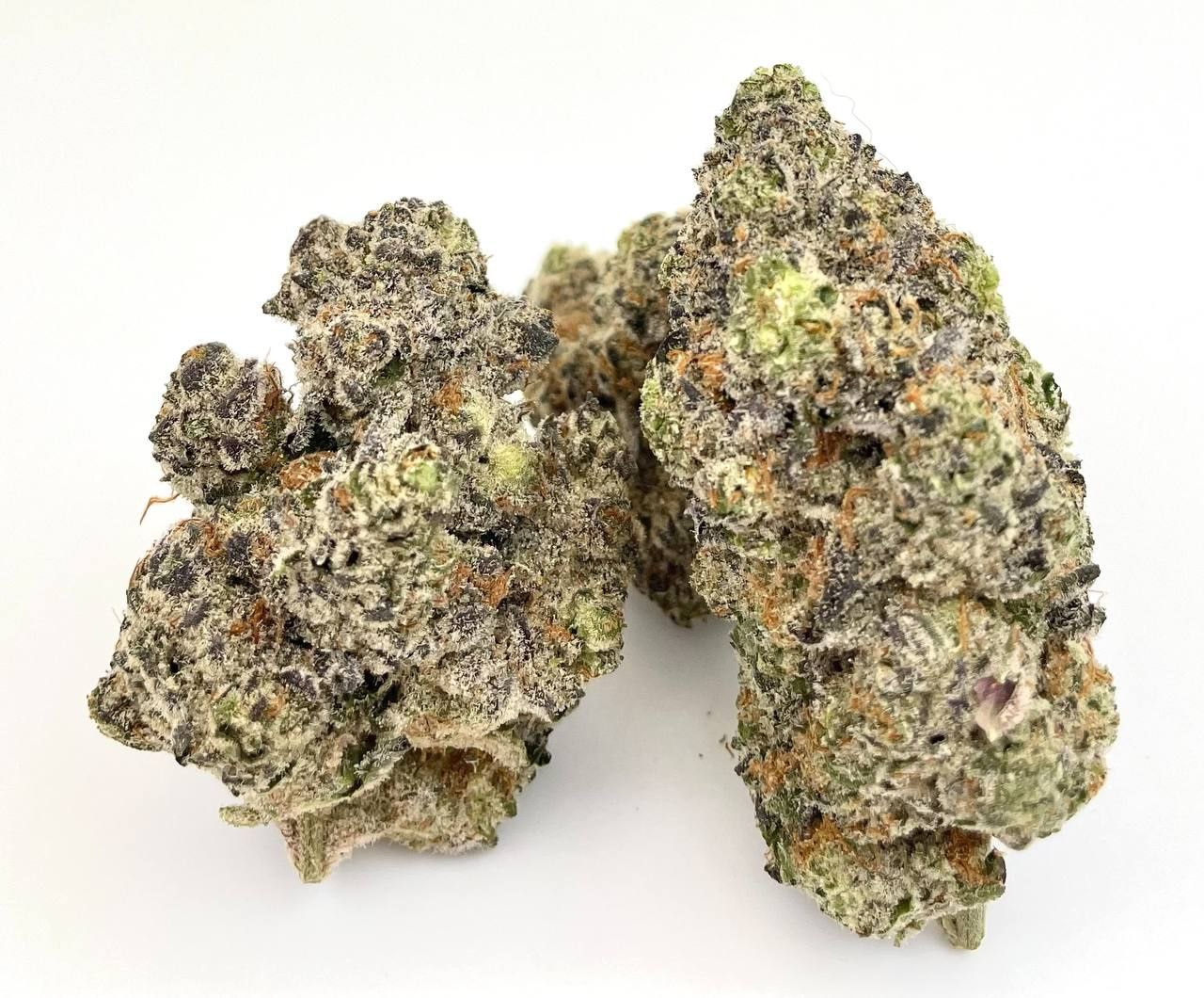 Look for: Dense, trichome-frosted buds; sweet-citrus aroma; recent harvest date